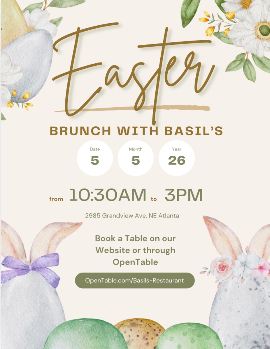 Celebrate Easter the delicious way at Basil's with our Easter Day Brunch Buffet—a festive spread filled with all your brunch favorites and signature tapas, plus a few extra-special holiday surprises you won’t want to miss! From sweet to savoy, every bite is crafted to bring a little extra joy to your table and make your holiday truly memorable.